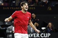 Taylor Fritz (27) se v sobotním zápase Laver Cupu konečně dočkal premiérové výhry nad Carlosem Alcarazem (22), proti kterému uspěl až v pátém vzájemném duelu. Američan povolil světové jedničce pouze pět her a na konto týmu světa přispěl důležitou výhrou. Z utkání byl poté naprosto nadšený. "Odvedl jsem opravdu dobrou práci, hrál jsem agresivně a beze strachu při důležitých bodech," komentoval svůj výkon.