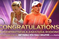 WTA TIANJIN - Turnaj mistryň je již kompletně obsazen. Poslední volné místo ve čtyřhře obsadily Alja Kudrjavcevová s Anastasií Rodionovovou, které se prestižního klání na závěr sezony zúčastní poprvé. Rusko-australská dvojice si letenku do Singapuru zajistila dnešním triumfem v čínském Tianjinu.