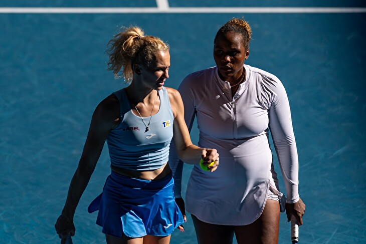 Siniaková je v Melbourne, kde debl ovládla již třikrát, ve hře i v singlu. V prvním kole si rodačka z Hradce Králové bez problémů poradila s Maďarkou Pannou Udvardyovou, které přenechala tři gamy. Její deblová parťačka Townsendová už naopak dohrála, když nestačila na krajanku Hailey Baptisteovou.
