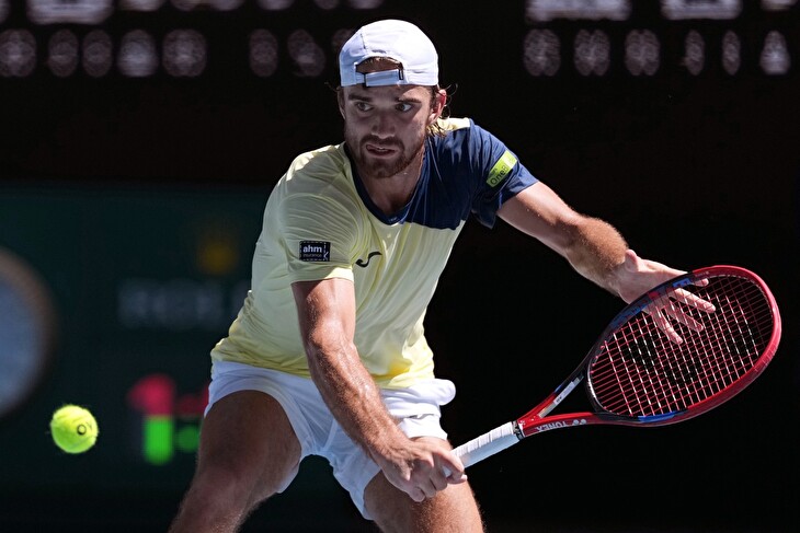 Český tenista nezabránil ani potupnému kanáru, potřetí v řadě si prohrál podání, podruhé pak čistou hrou a za pouhých 19 minut hry ztratil první set 0:6. Macháč se v úvodním dějství dopustil 14 nevynucených chyb oproti pouhým dvěma Francouzovým, na své konto si připsal pět vítězných míčů, Moutet sedm.
