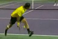 Spíš badminton než tenis připomíná závěr výměny mezi Rogerem Federerem a Nikolajem Davyděnkem na US Open, kde se utkali v roce 2007. Pozdější vítěz celého turnaje Federer byl v sice v nevýhodné pozici, razantními voleji zahranými z místa mezi "křížem" a základní čarou přesto dokázal výměnu vyhrát...