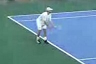 Včera jste mohli vidět napodobování Johna McEnroa, dnes nabízíme dalšího vynikajícího bývalého profesionální hotenistu - Andrého Agassiho opět v podání Andyho Roddicka. Ten zapomněl na jedno - jeho krajan Agassi nosil oproti ostatním tenistům krátké ponožky...