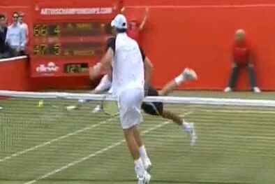Jako Boris Becker v nejlepších letech skočil na síti po míči Nicolas Mahut v souboji s Andym Roddickem. Odměnou mu byla vyhraná výměna, obrovský aplaus diváků a nadšení televizních komentátorů...